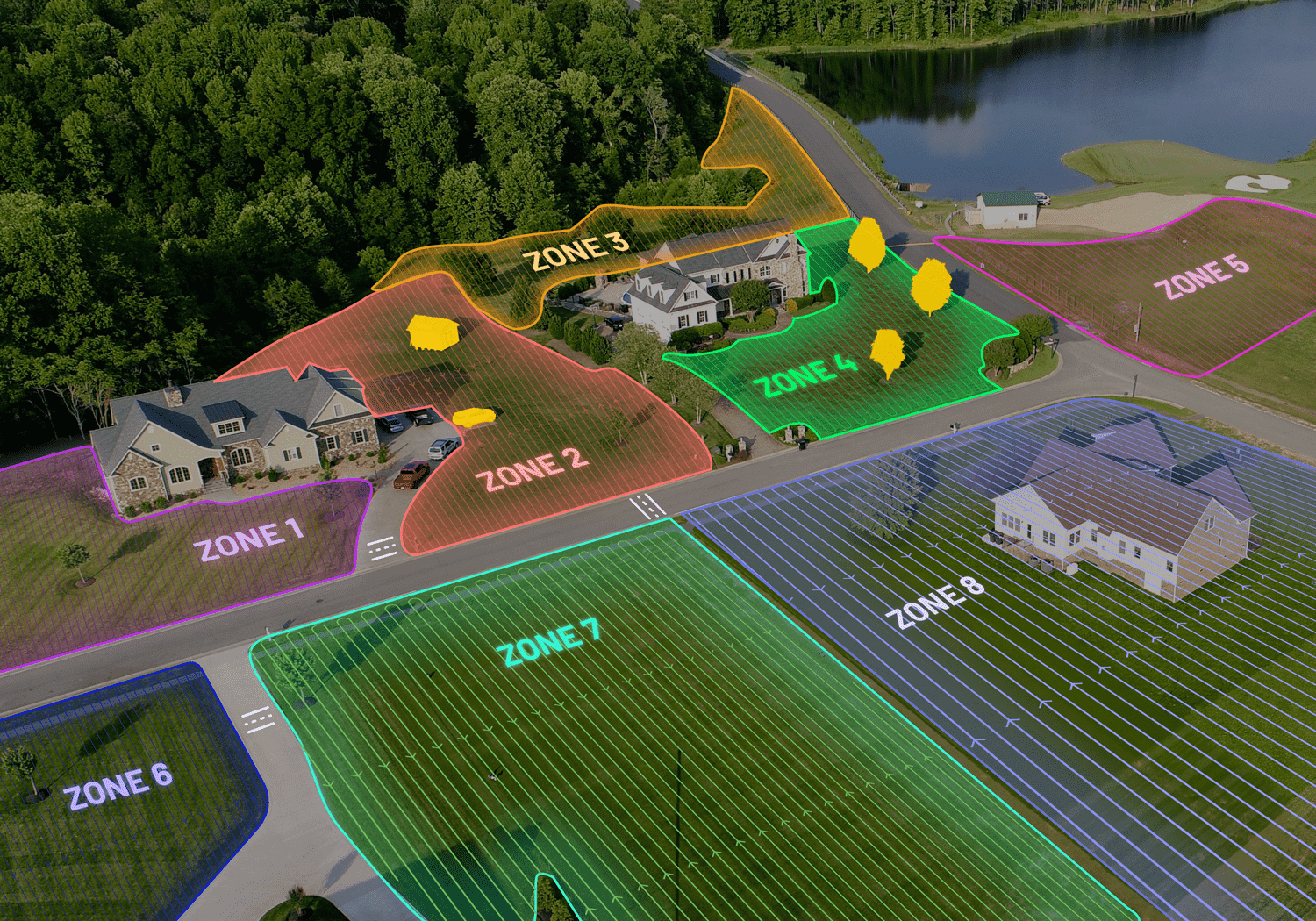 Administra fácilmente 50 áreas de césped, incluyendo jardines frontales y traseros, bordes de caminos y zonas prohibidas como piscinas y macizos de flores. Puedes restaurar fácilmente el mapa original con un solo botón, eliminando la necesidad de dibujarlo de nuevo.