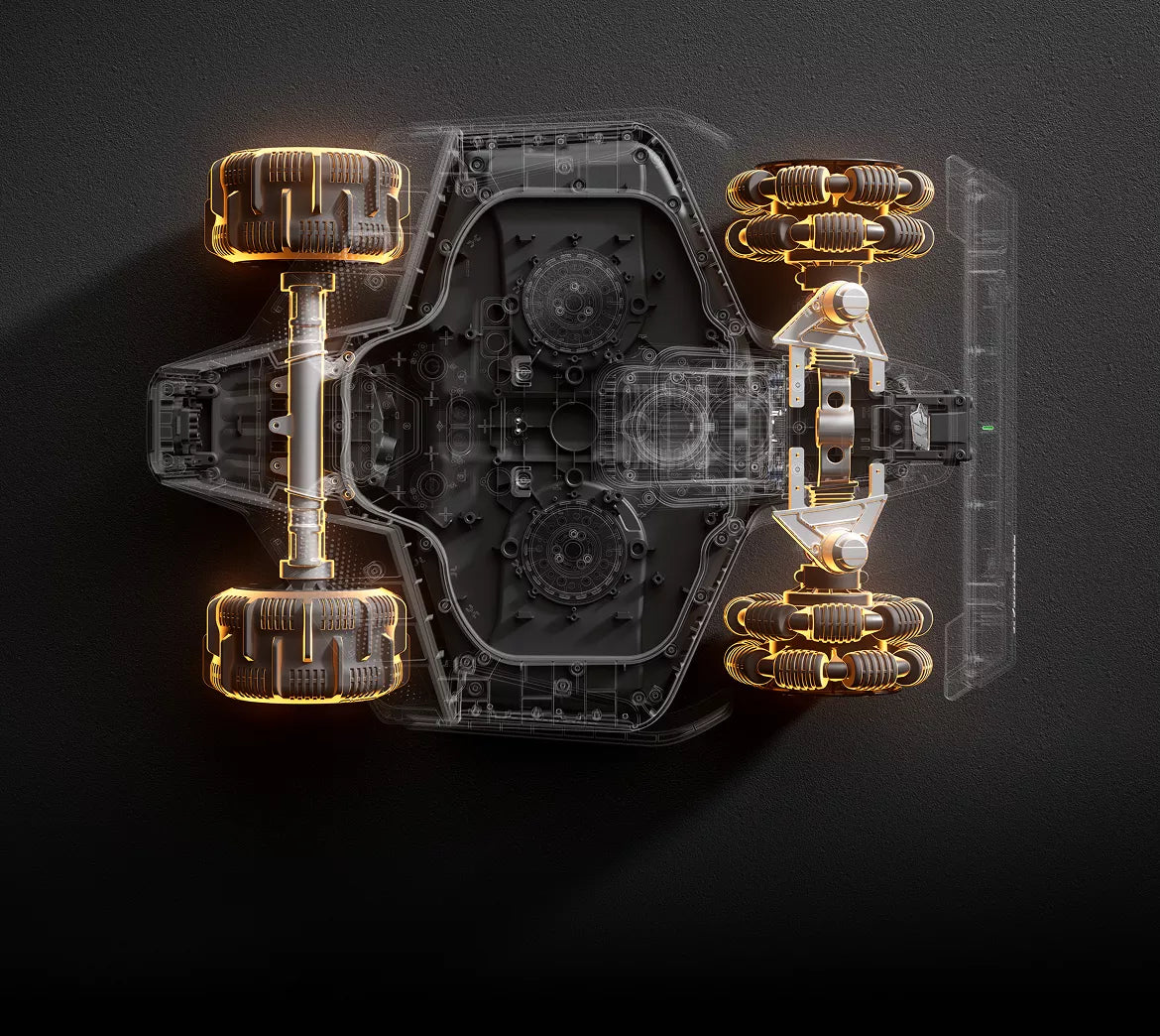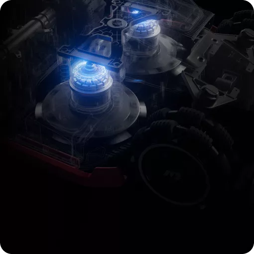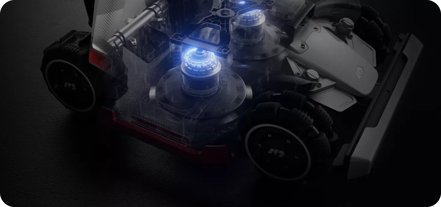 Dos motores de alto par de 165 W con discos de 6 cuchillas trabajan con la Visión AI del robot cortacésped inteligente LUBA 3 AWD para ajustar automáticamente velocidad y potencia según la densidad del césped, maximizando el rendimiento de corte y la eficiencia energética.