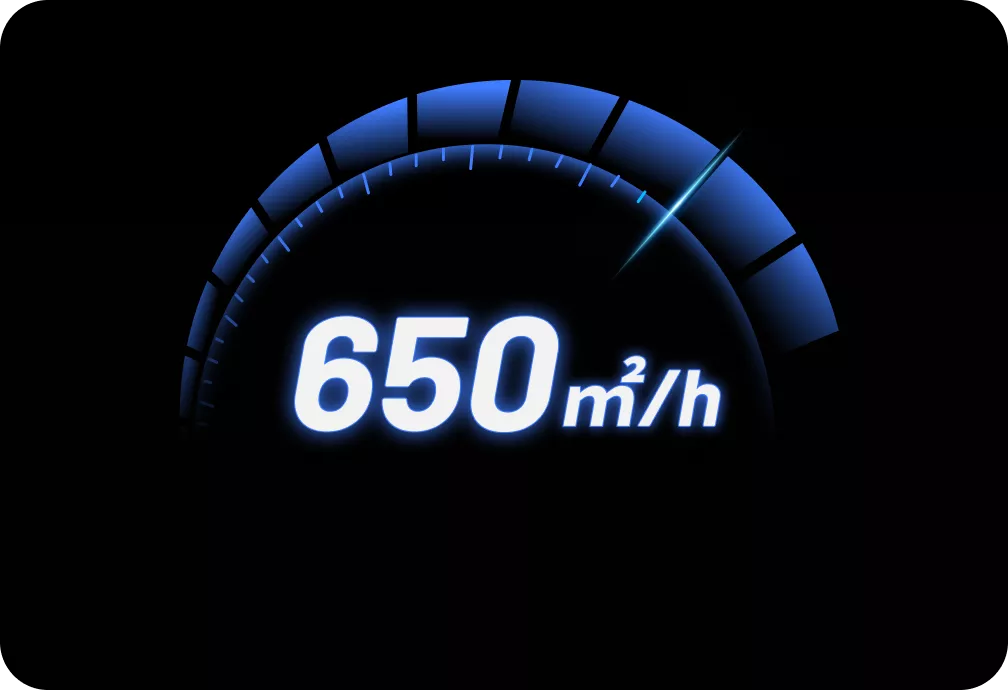 Hasta 650㎡/h (7000 ft²/h) de eficiencia de corte