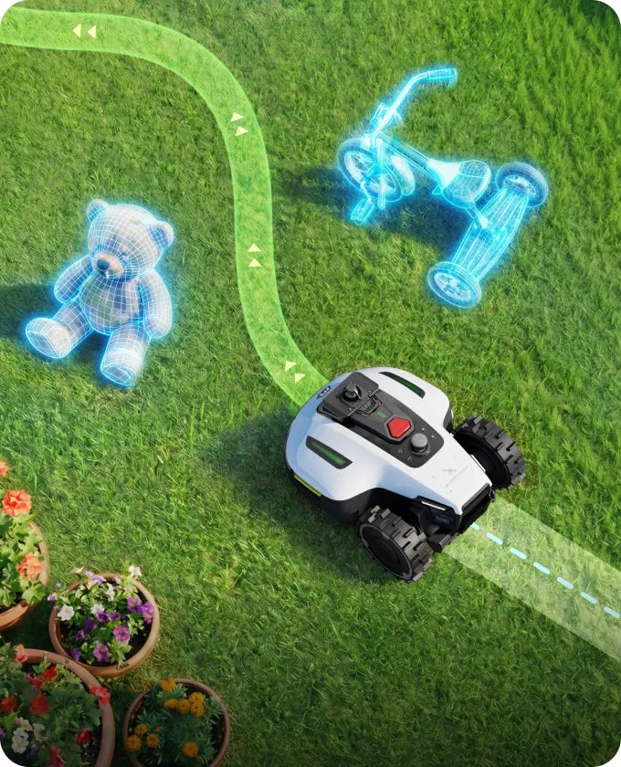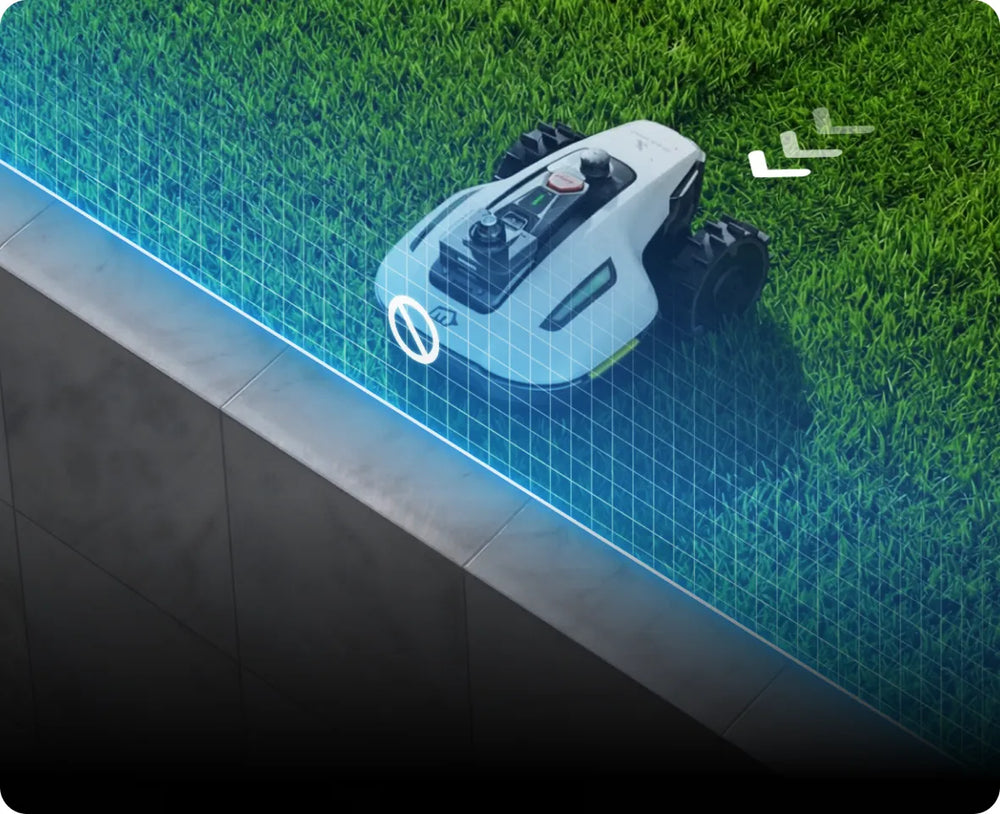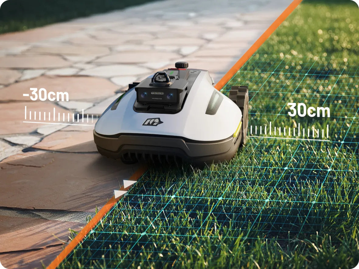 Una vez finalizado el corte, el robot cortacésped YUKA mini 2 remata el trabajo con un recorrido extra por el perímetro y un recorte al borde ajustado a la distancia que tú defines. Cobertura total, justo como la quieres.