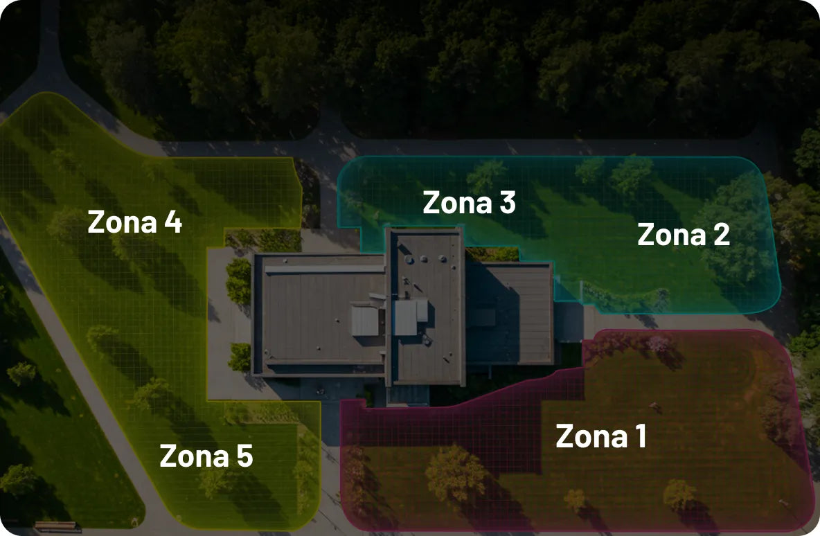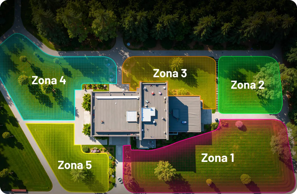 El robot cortacésped YUKA mini 2 puede explorar y mapear automáticamente hasta cinco zonas consecutivas. Solo guíalo una vez por cada área. Recordará la estructura del jardín e identificará de forma inteligente los caminos entre zonas como “rutas de corte”.